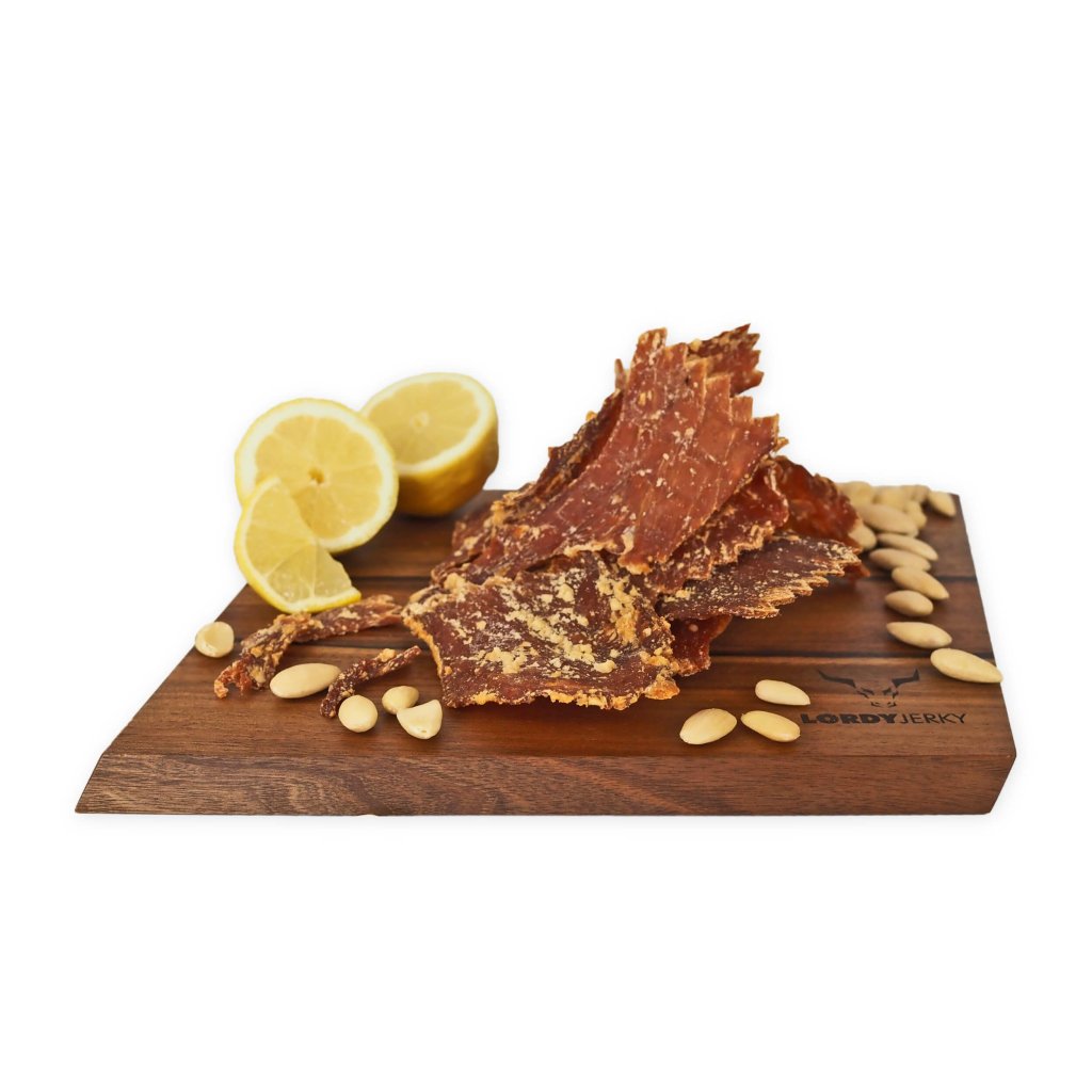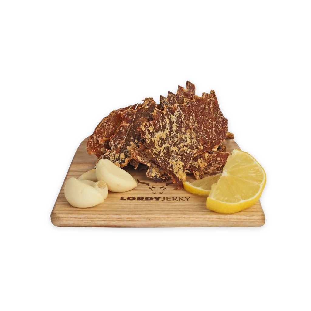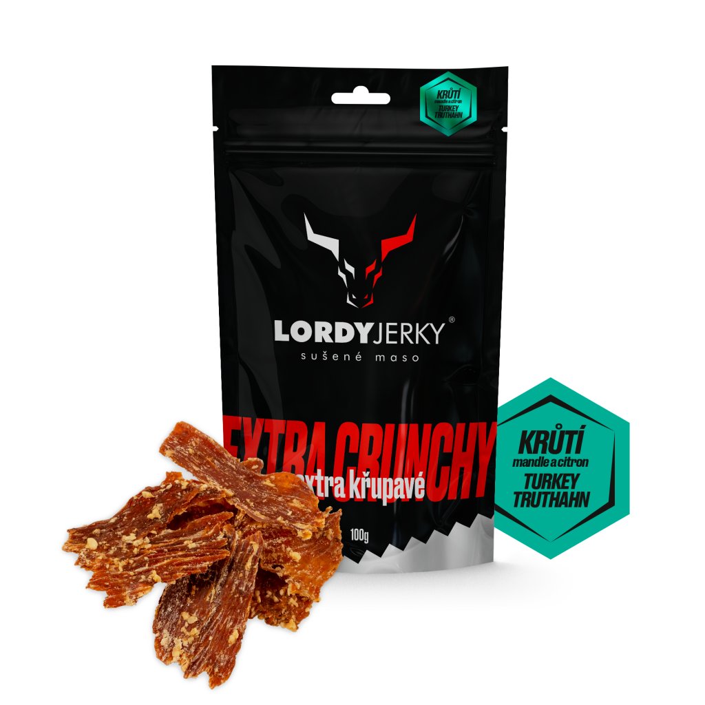 LORDYjerkyⓇ – marinované sušené krůtí maso. Masný výrobek trvanlivý tepelně opracovaný.