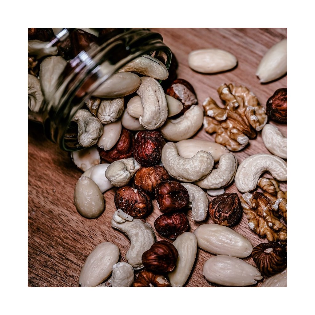 | Druh: | Arašídy, Kešu, Lískové ořechy, Makadamové ořechy, Mandle, Para ořechy, Pistácie, Pekanové ořechy, Vlašské ořechy |